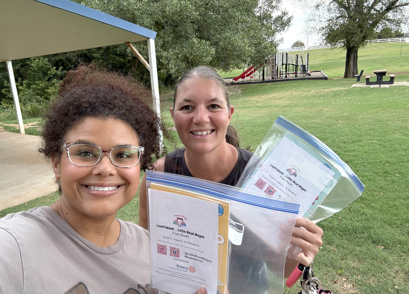 Newcastle Rotary Club International members took on a project to promote literacy and community connection. They partnered with “The Little Read Wagon” program to hide books around Newcastle parks.