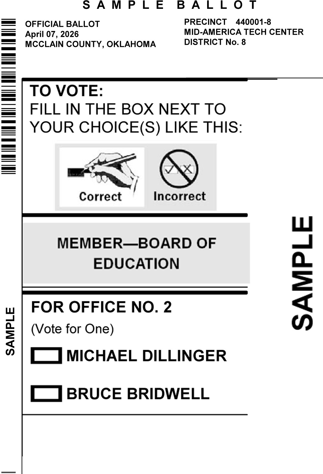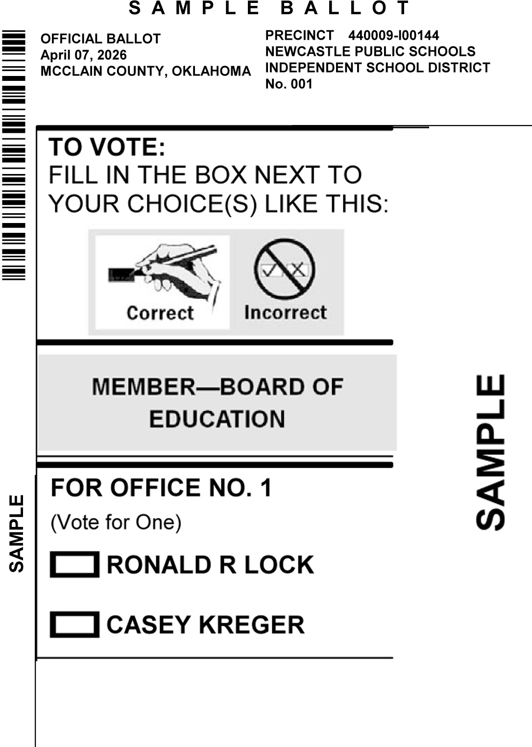Newcastle voters will be going to the polls to determine who will serve in two seats — one on the Newcastle Public Schools’ Board of Education, and one on the Mid-America Technology Center Board of Education.