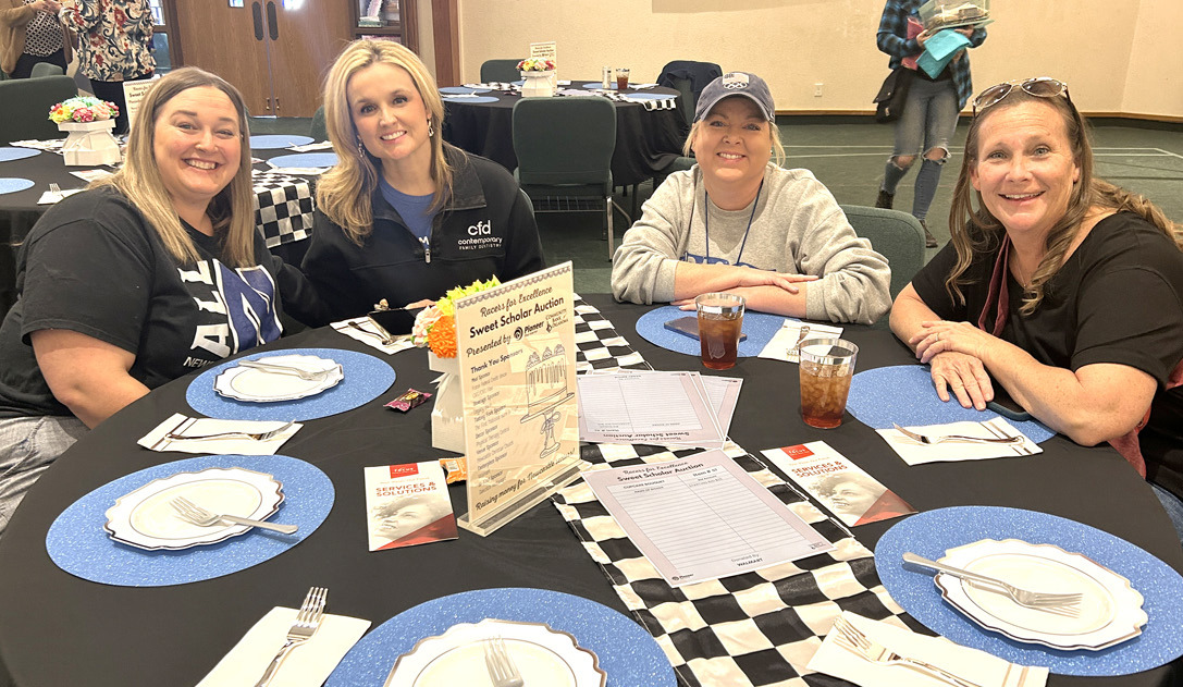 • photo by Mark Codner Taking time from their work day to attend the Sweet Scholars Luncheon and support scholarships for Newcastle students are Ashley Stephenson, Melissa Crain, Kellie McBride, and Jennifer Low.
